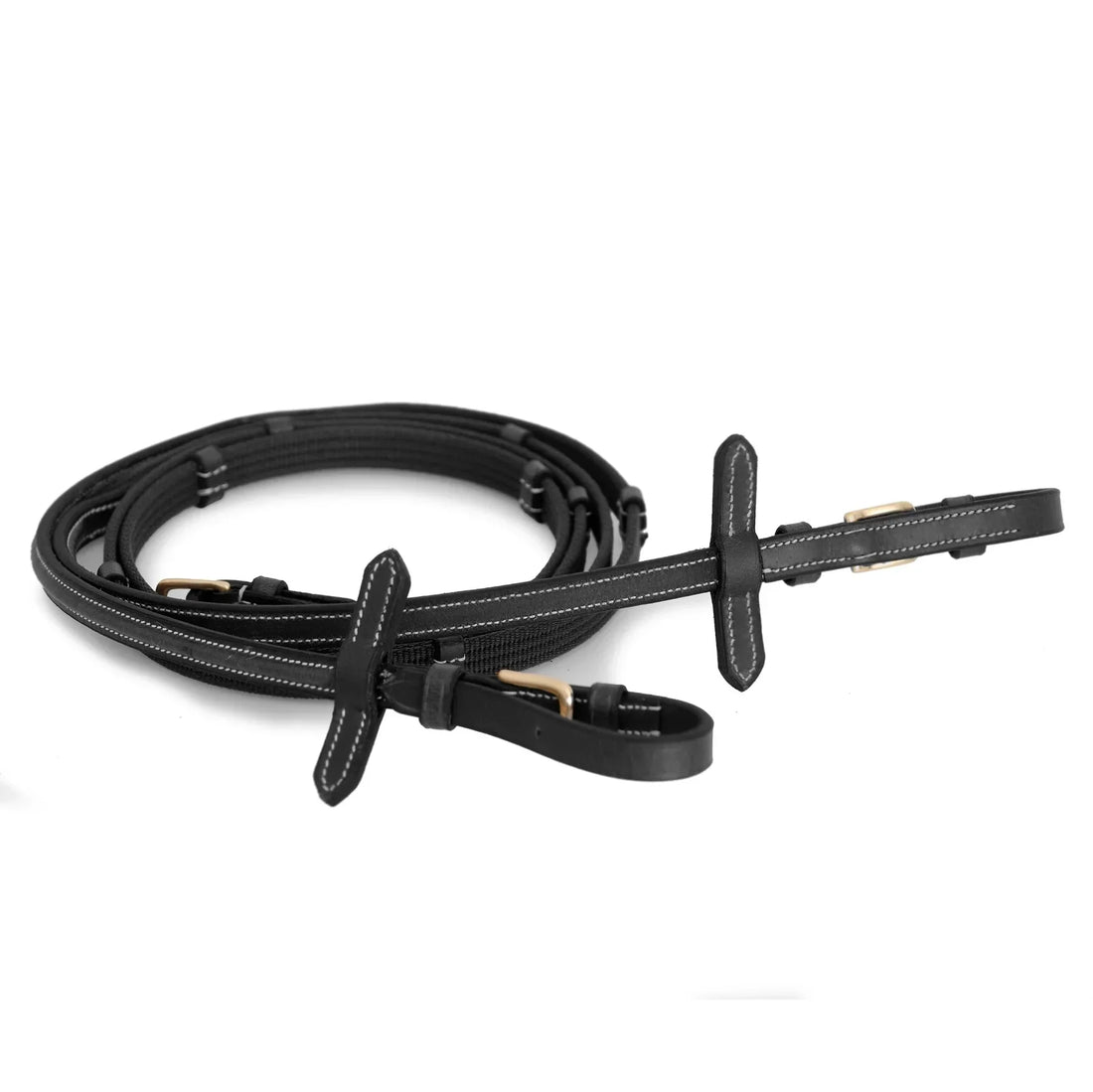 Vävribbtygel med läderstoppar för ett bekvämt och säkert grepp under ridning. Utrustad med spännen i...