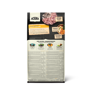 Valpfoder för mellanstora valpar från Acana – Ett spannmålsfritt torrfoder fyllt med färskt kött från frigående kyckling, vildfångad flundra, ägg och färska grönsaker. Den här kycklingbaserade helfoder är utformat för valpar och unghundar av alla raser och åldrar, med wholeprey-konceptet som inkluderar kött, organ och ben för en komplett och balanserad näring.