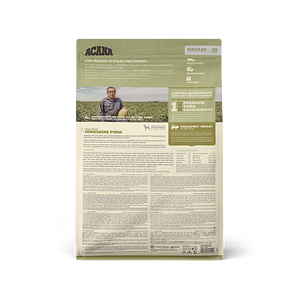 Acana Singles Yorkshire Pork Dog Formula är ett spannmålsfritt torrfoder för hund med fläskkött, anpassat för hundar av alla raser och storlekar. Den här biologiskt anpassade torrfoder är tillverkat med färska, naturliga ingredienser och baserat på hundens naturliga kost.