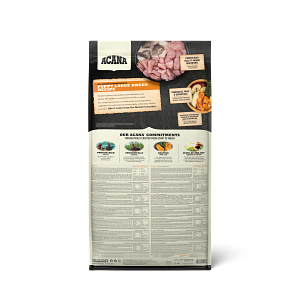 Acana Dog Puppy Large Breed är ett spannmålsfritt valpfoder särskilt framtaget för valpar och unghundar av stora och gigantiska raser. Fodret är packat med färskt kött från frigående kyckling, vildfångad flundra, ägg och färska grönsaker. Den här kycklingbaserade helfoder innehåller wholeprey-konceptet, där kött, organ och ben kombineras för att ge en komplett och balanserad näring. väl lämpat för att stödja en hälsosam tillväxt och utveckling hos stora hundraser.