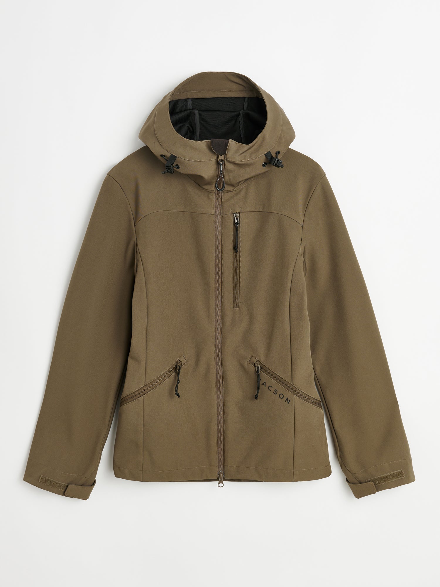 Berit är en väl lämpat jacka för den aktiva ryttaren som söker både stil och funktionalitet. Den här kortare variant av fjolårets favorit, Bodil, är tillverkad i en vind- och vattenavvisande softshell med andningsfunktion, gjord av 100% återvunnen polyester. Berit har en justerbar huva och förböjda ärmar som ger dig rörelsefrihet, samtidigt som tre dragkedjeförsedda fickor ger dig gott om utrymme att förvara dina tillhörigheter. Med en vattenpelare på 5000 mm och MVP på 3000 har denna jacka enastående skydd mot väder och vind. Berit har en normal passform och är något längre bak för att ge extra skydd mot väder och vind. Med sin stilrena design och praktiska funktioner är Berit ett måste för alla ryttare som vill ha en jacka som både skyddar och ser bra ut.