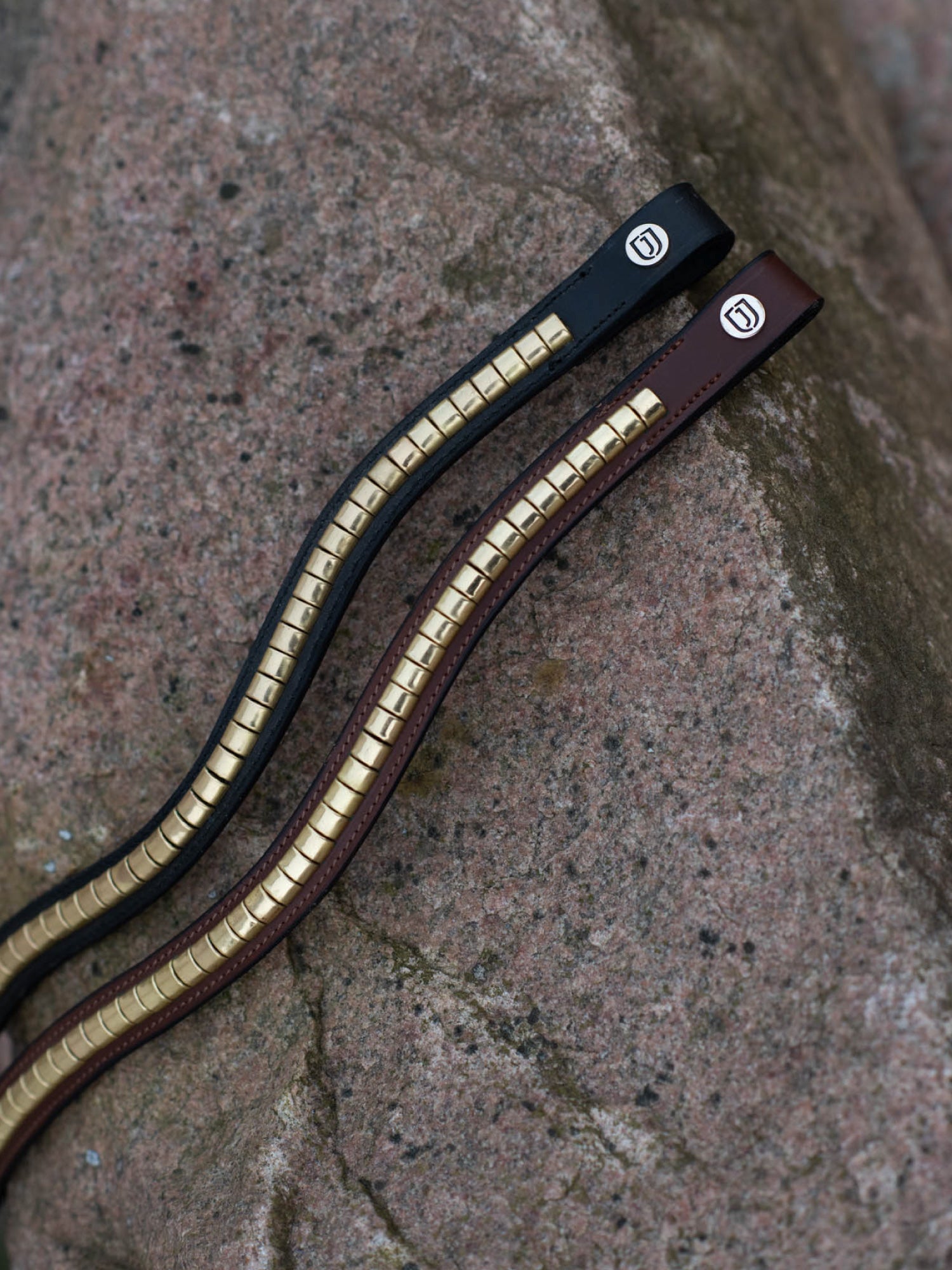 Svängt pannband med stora klinkers i mässing. Smakfullt och stilrent för att ge de små extra detaljerna.