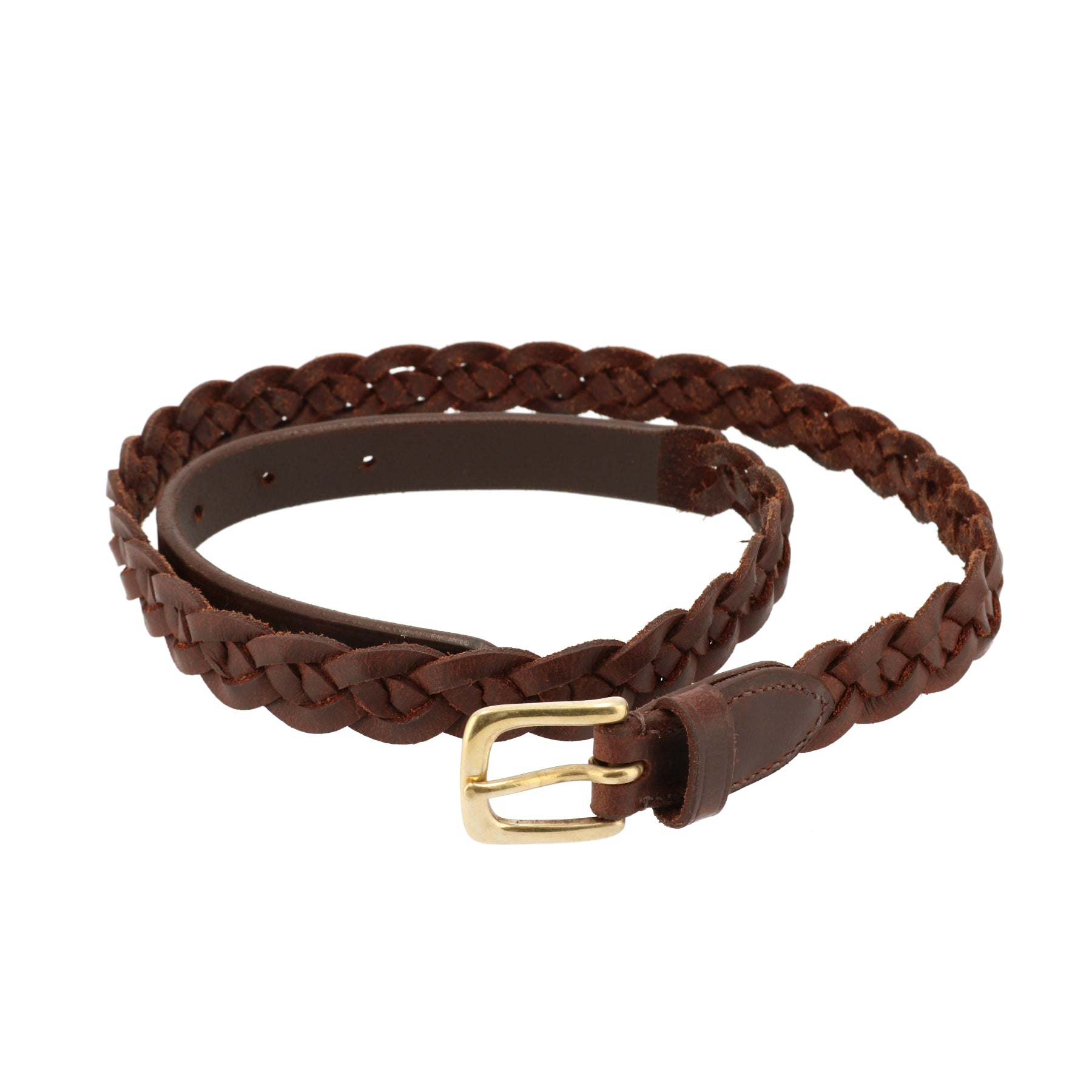 Mycket snyggt skärp i flätat läder. Spänne i antikfärgad mässing och diskret logo.