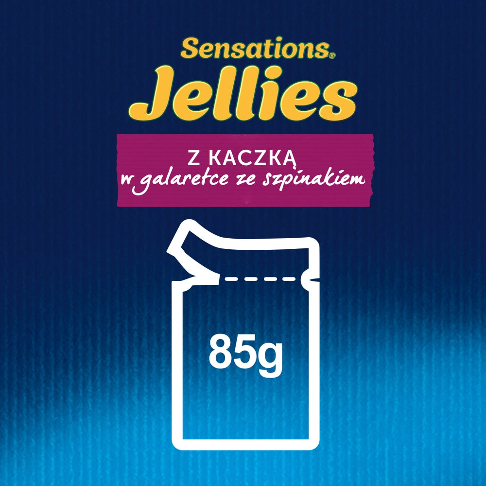 Felix Sensations Jellies är en komplett kattmat speciellt framtagen för vuxna katter. Den är dessutom lämplig för kastrerade katter. Produkten riktar sig till kattägare som önskar en näringsriktig kost med läcker smak för sina fyrbenta vänner. Gelén med smak av anka och inslag av spenat erbjuder en upplevelse för katten med sina saftiga bitar och aromatiska smaker.