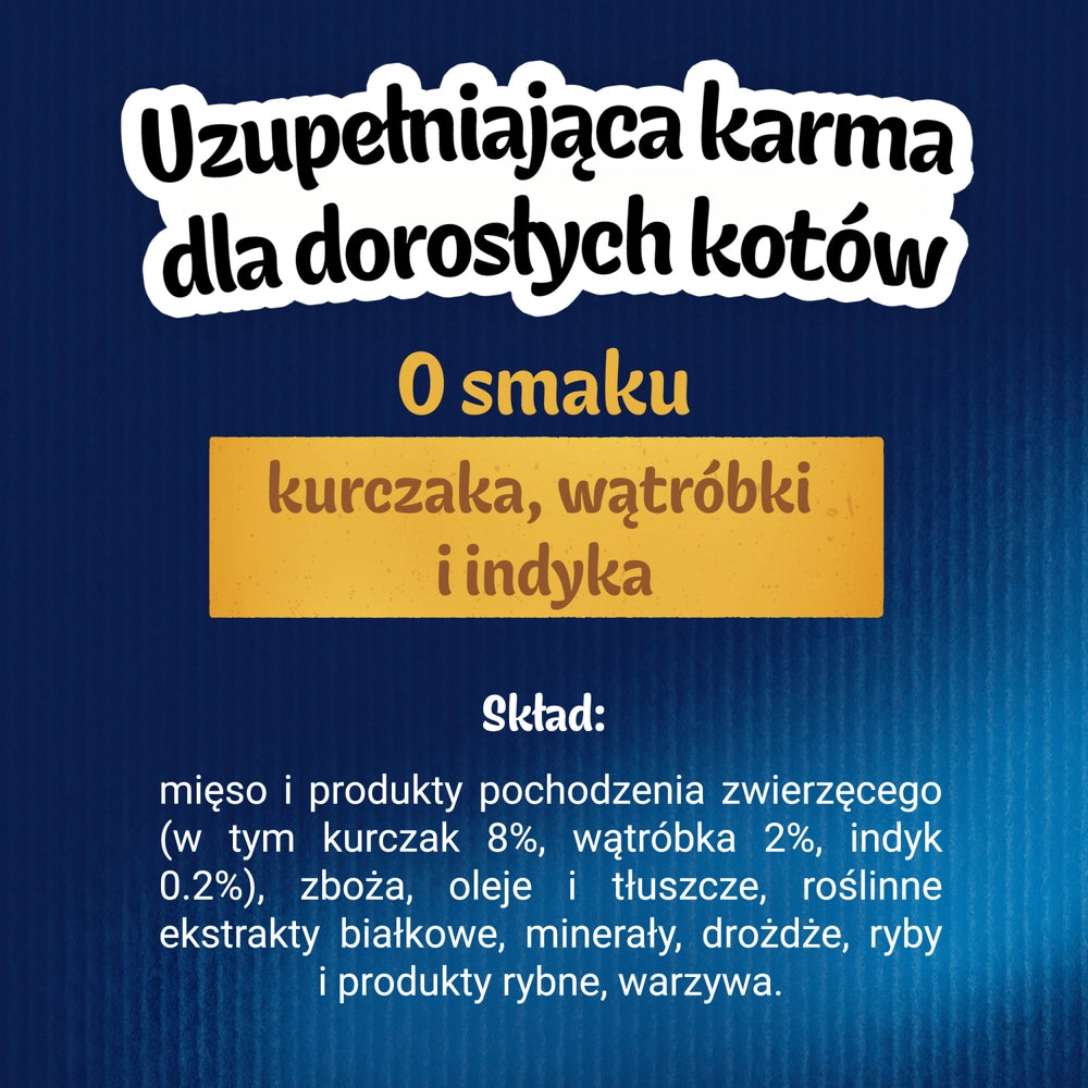 - Kött och animaliska biprodukter (inklusive kyckling 8%, lever 2%, kalkon 0,2%)