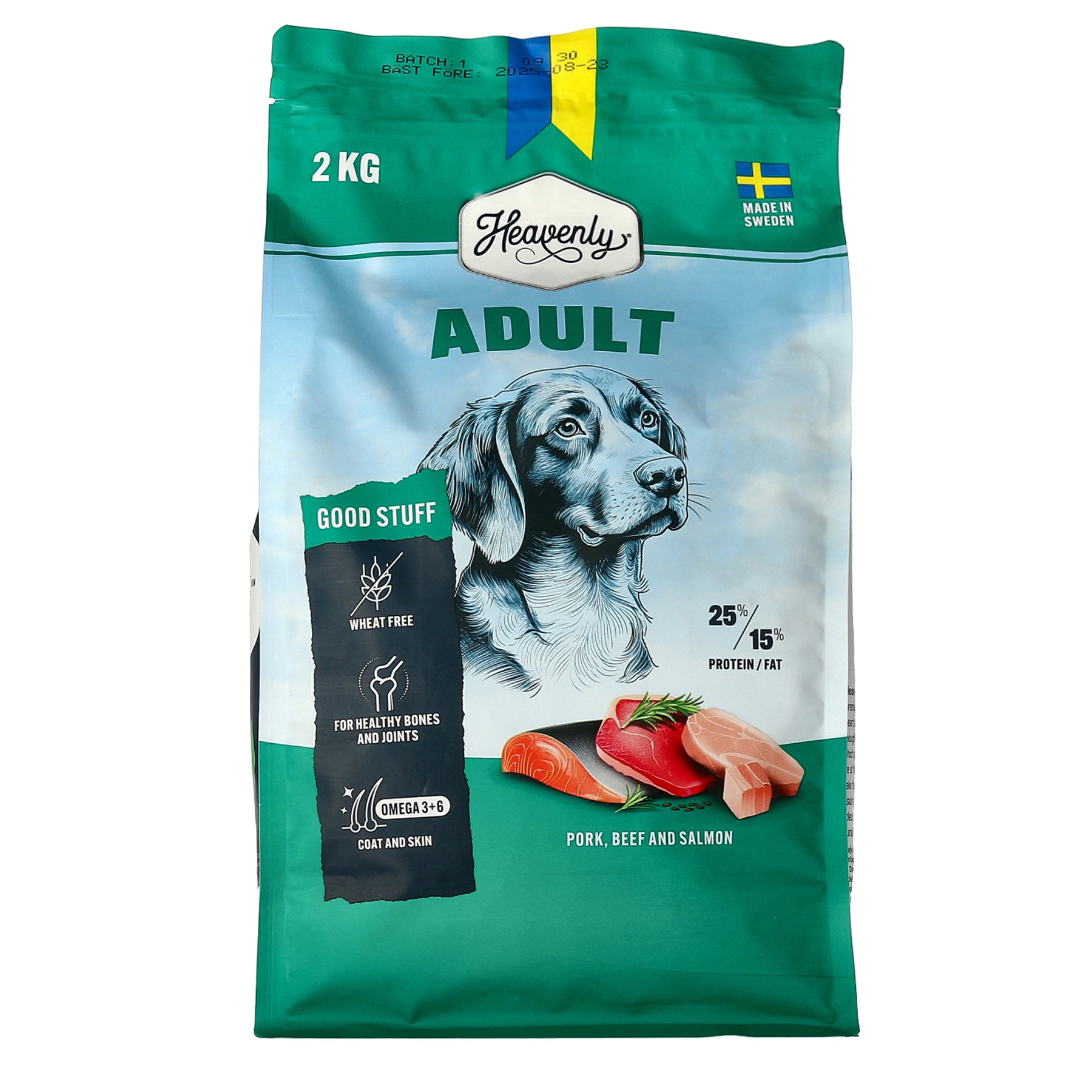 Detta högkvalitativa torrfoder är specifikt utformat för att möta behoven hos vuxna hundar. Fodret är noggrant sammansatt med en blandning av proteinkällor från gris, nöt och lax som utgör riktiga smakupplevelser för din hund. Denna näringsrika formula stödjer en hälsosam tillväxt och allmän vitalitet. Genom att inkludera rosmarin och andra naturliga ingredienser, främjas en optimal matsmältning och ett starkt immunförsvar. Fördelarna med denna produkt inkluderar en balanserad diet med viktiga omega-fettsyror som bidrar till hälsosam hud och päls samt ledstöd genom tillsatt glucosamin.