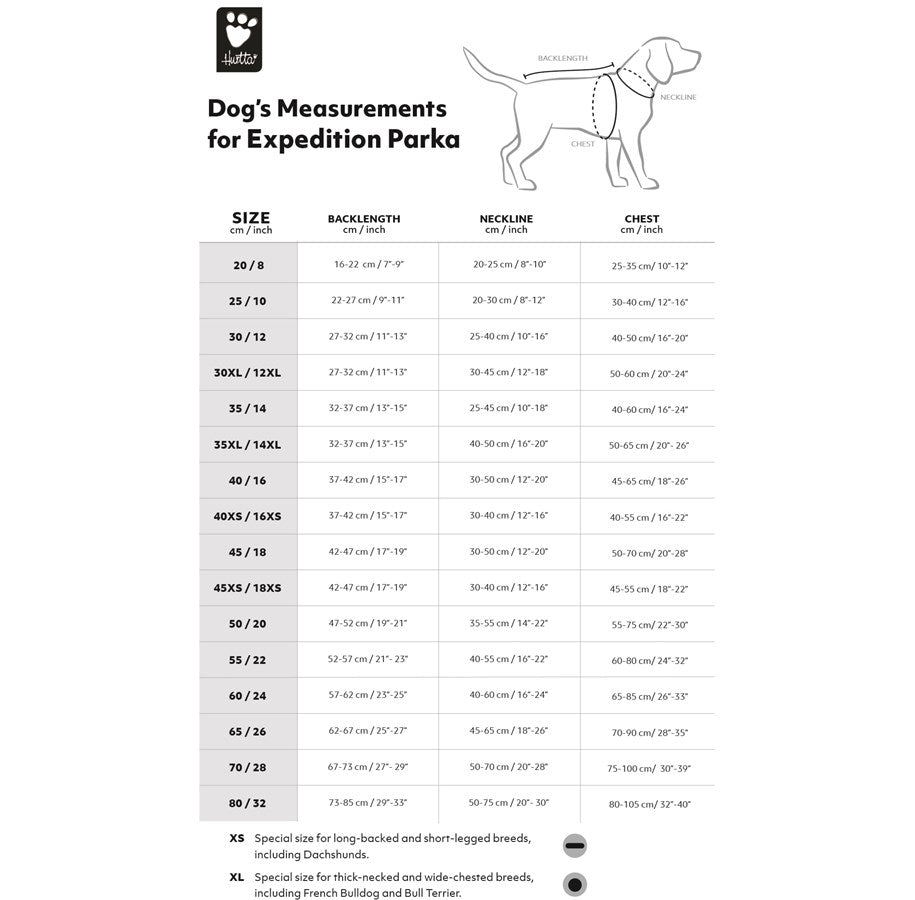 Expedition Parka har utvecklats särskilt för korthåriga hundar och hundar utan underpäls, men i kalla förhållanden passar den även för alla andra hundar. Den här är lämplig för extra värme, till exempel för agilityhundar efter träning eller för hundar som behöver värme på grund av sin ålder eller hälsa.