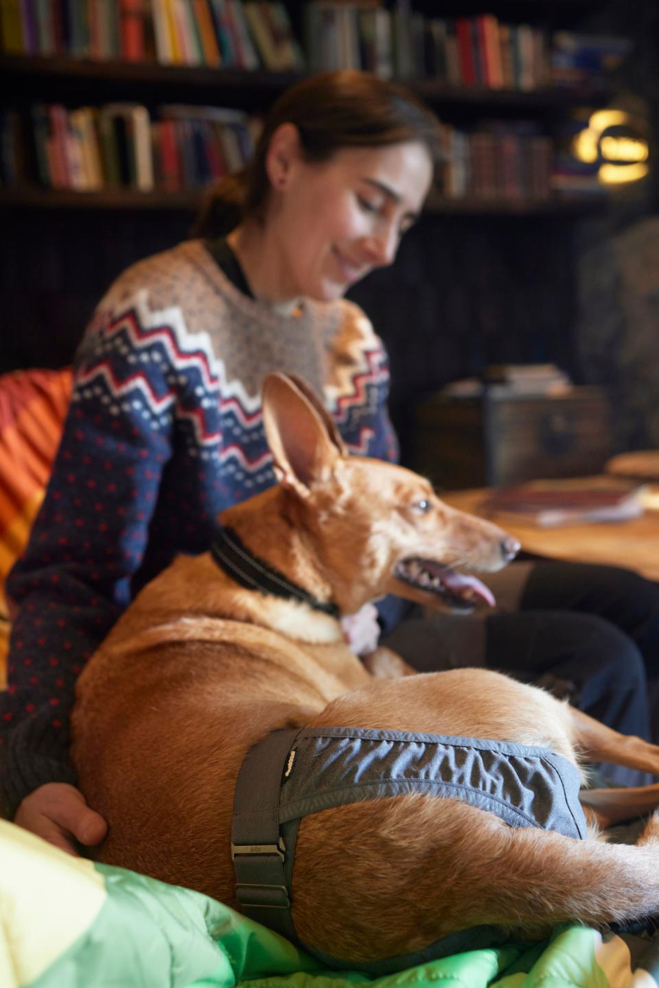 Designforbedringerne i den nye ECO-version kan både ses og mærkes. Den här lette stof løber langs hundens side eller ribben og giver en bedre pasform til halen takket være den udskårne wraparound-styling. Den här justerbare elastiske linning er lavet af et blødt og fleksibelt materiale, som giver en behagelig pasform, der bliver på plads, selv når hunden løber hurtigt. Den här smarte kroglukningssystem har en let og holdbar metalkrog, der lukkes hurtigt og nemt og sidder godt fast uden at hive i hundens pels.