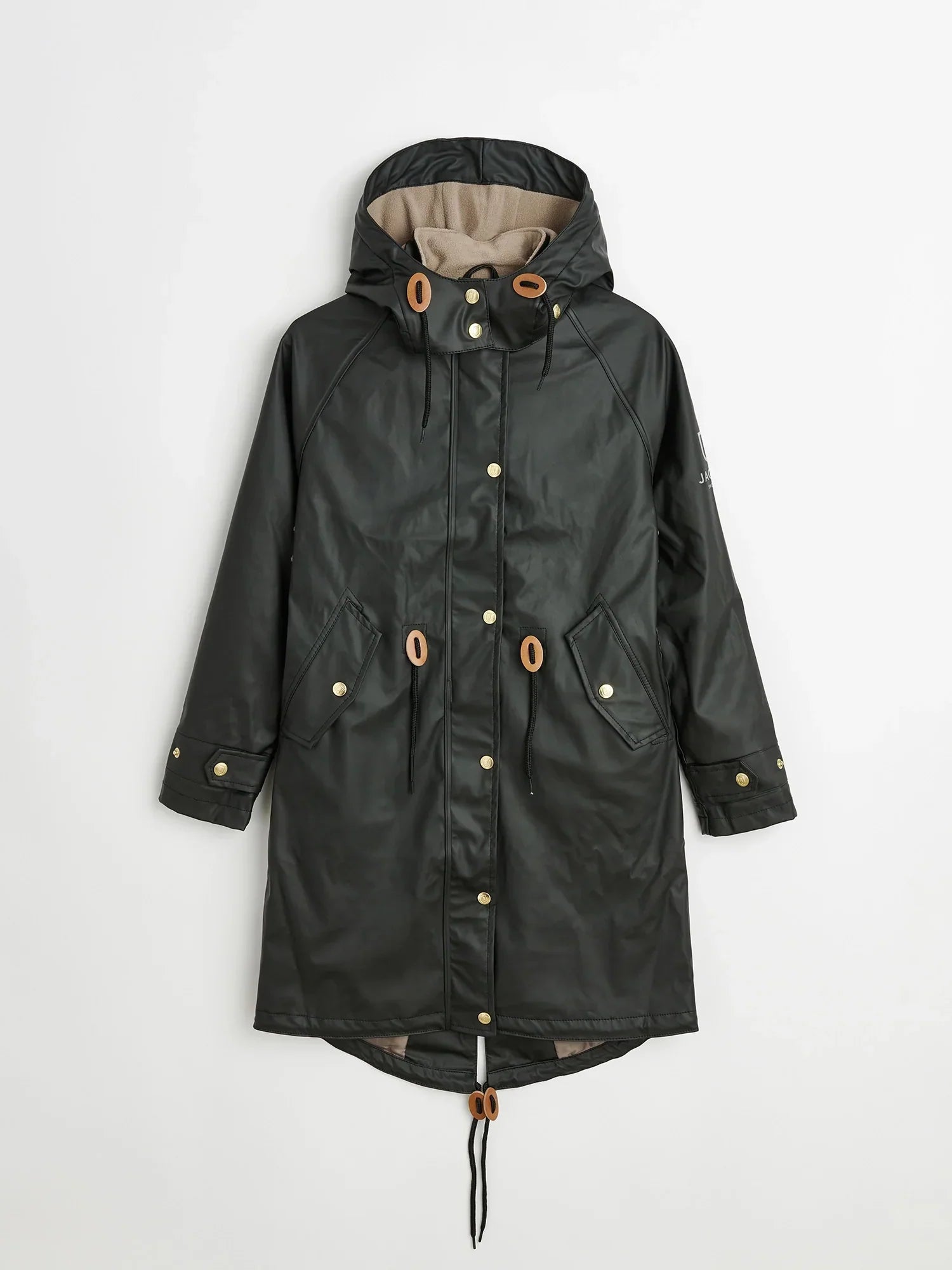 Upptäck Peggy Regnkappa , en lång vattentät regnkappa tillverkad i smidigt PU-material . Den här jacka är designad för att hålla dig torr och bekväm under blöta ridpass och promenader. Med en avtagbar huva och ett öppningsbart ridsprund bak får du optimal rörelsefrihet, oavsett aktivitet.
