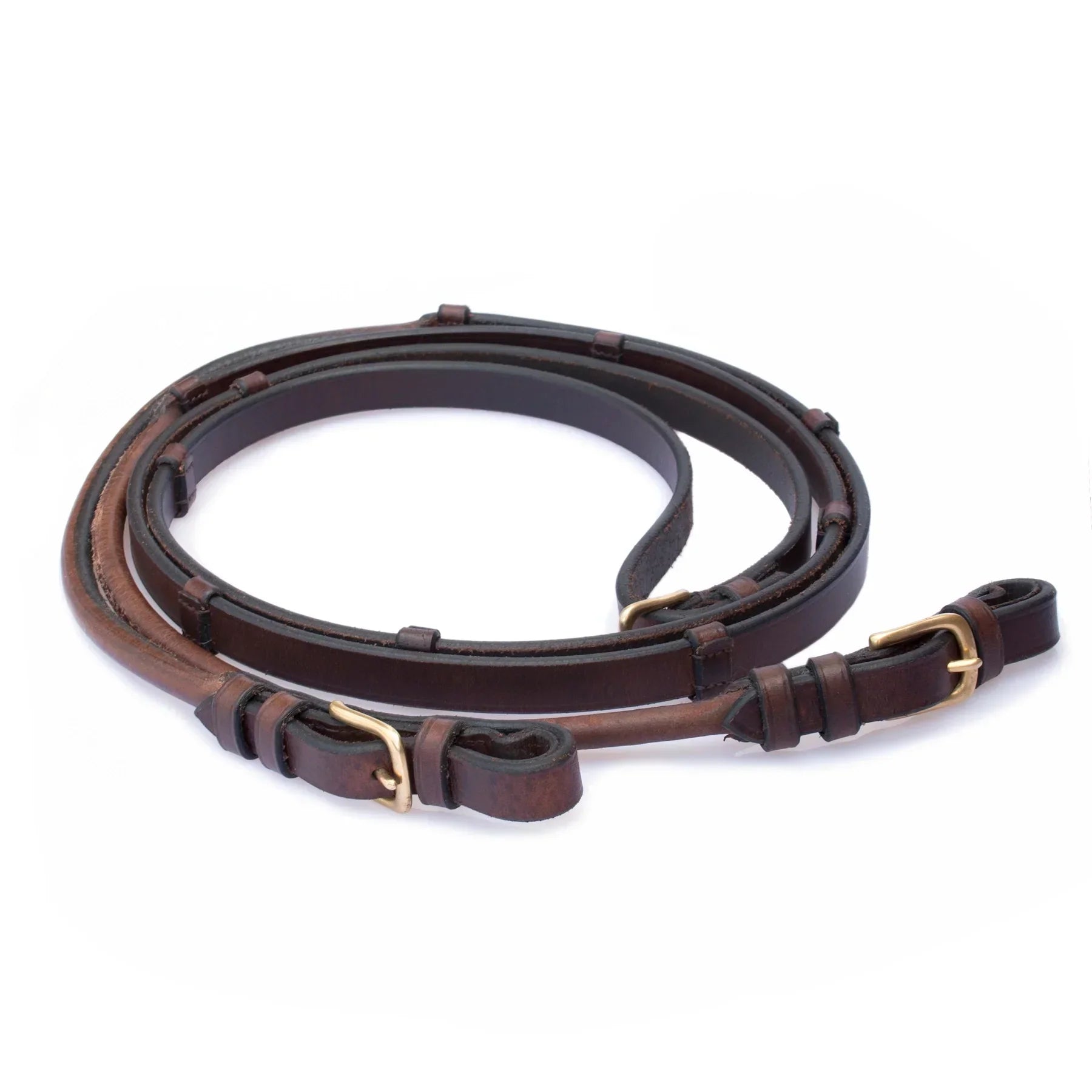 Den här rundsydda lädertygeln från Jacson erbjuder både stil och funktion. Tillverkad av vegetabiliskt garvat läder , ger den en mjuk och bekväm känsla för både häst och ryttare. Utrustad med läderstoppar och spännen i mässing , är den designad för att hålla hög kvalitet och ge ett elegant utseende. De ljusa dekorsömmarna framhäver tygelns klassiska design och gör den väl lämpat för allt från vardagsträning till tävling.