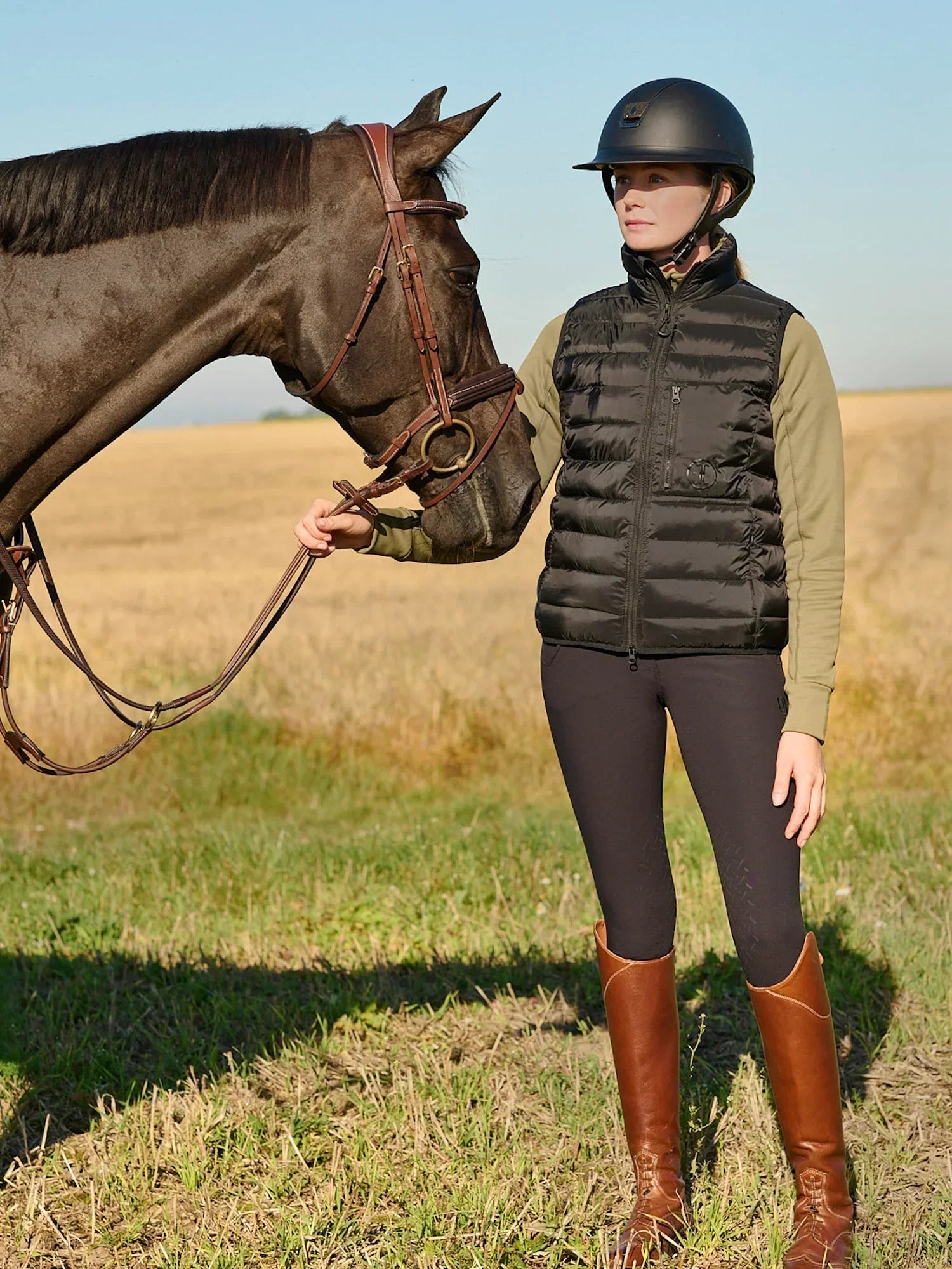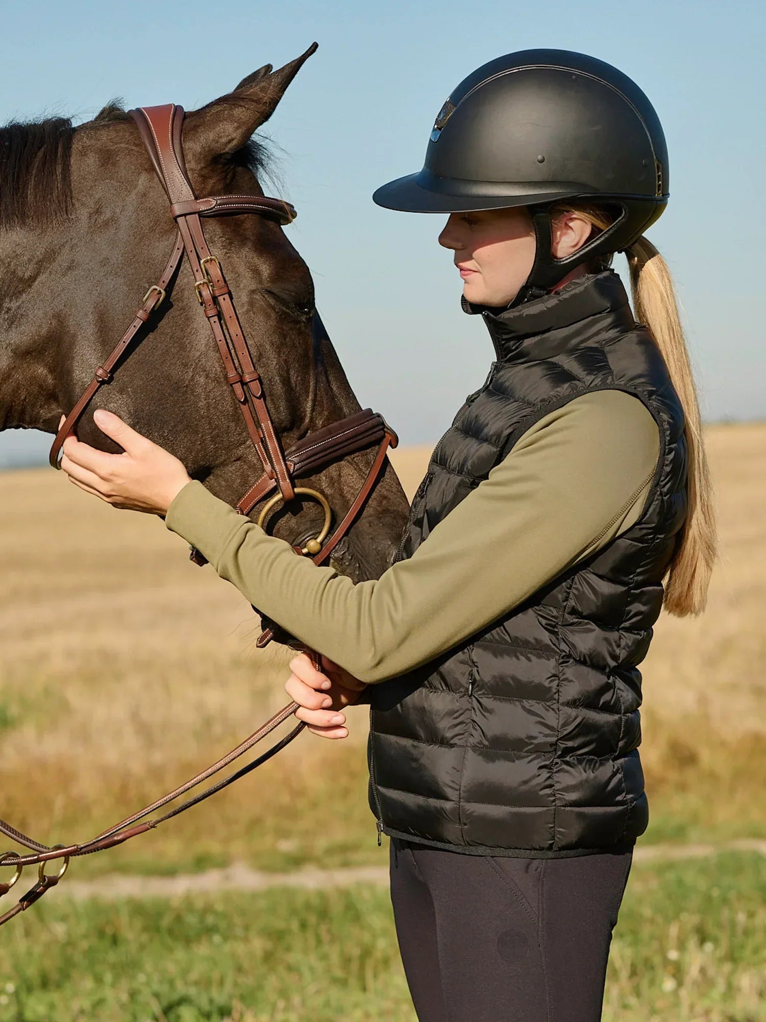 Upplev den perfekta ridsportvästen – vår Lena! Den här väst är utformad för att ge dig både stil och funktionalitet, oavsett om du är ute på en ridtur eller står vid sidan av banan. Med sin dunliknande syntetfyllning och impregnering med Bionic Finish ECO håller Lena dig varm och torr i alla väderförhållanden.