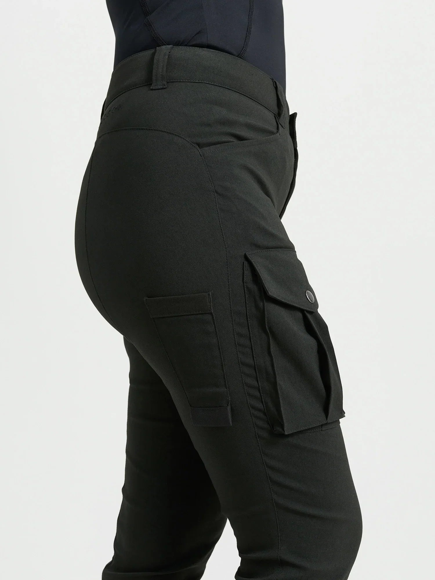 - Benvidd: Avsmalnande design med resår vid ankeln för användning med ridstövlar.
