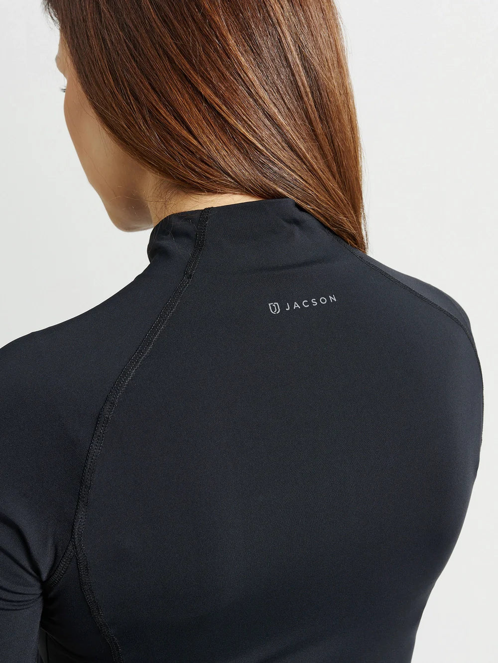 Malou är en stilren och klassisk långärmad topp som kombinerar stil och funktion. Tillverkad i ett tekniskt funktionsmaterial med 1/2 zip, är denna tröja utformad för att ge dig en figurskuren passform som följer din kroppsform tack vare dess exceptionella elasticitet. Den här snabbtorkande och lättviktsmaterialet andas, vilket underlättar att hålla dig sval och fräsch under både stallbestyr och ridturer, oavsett om du rider inomhus eller utomhus.