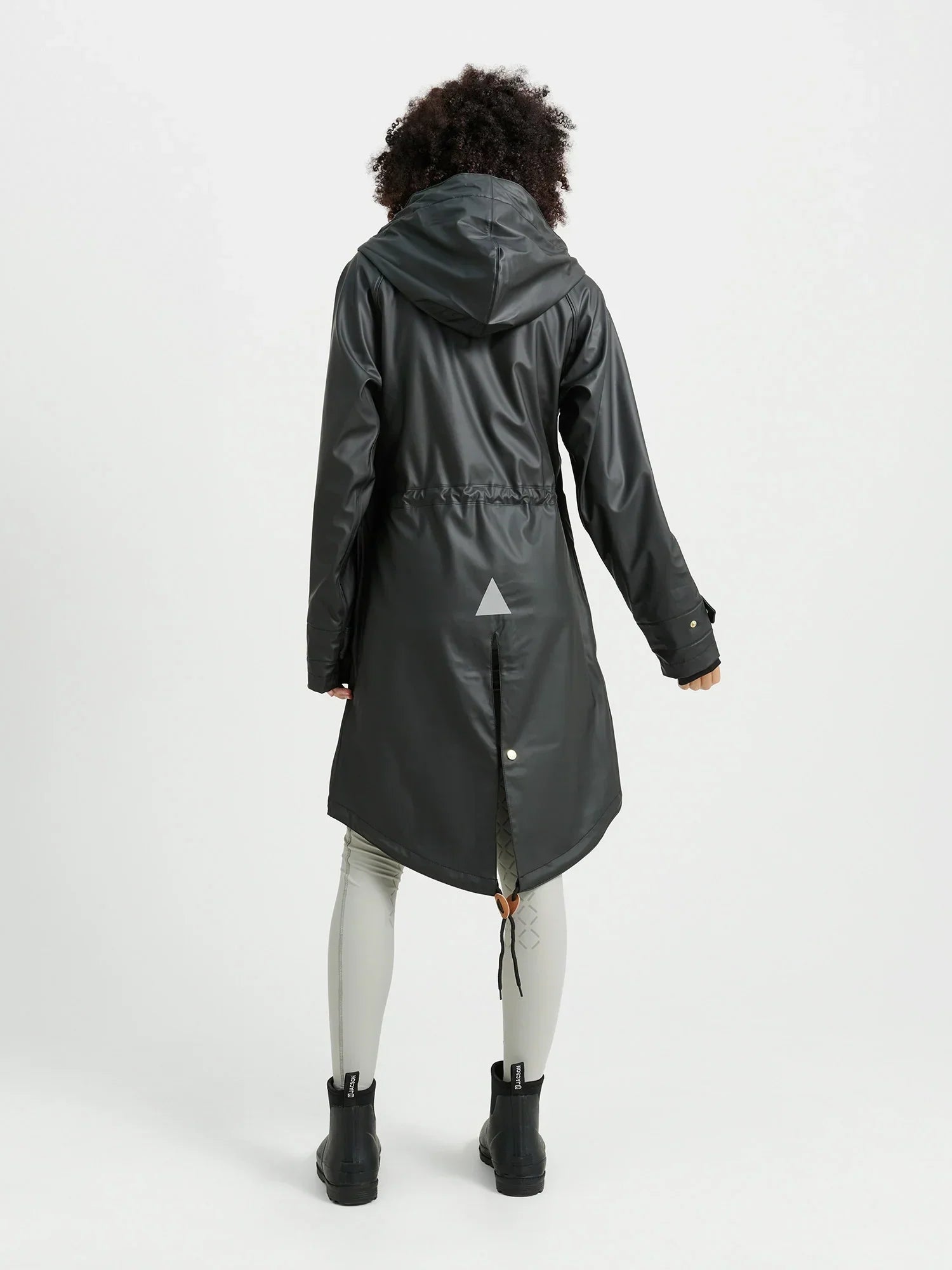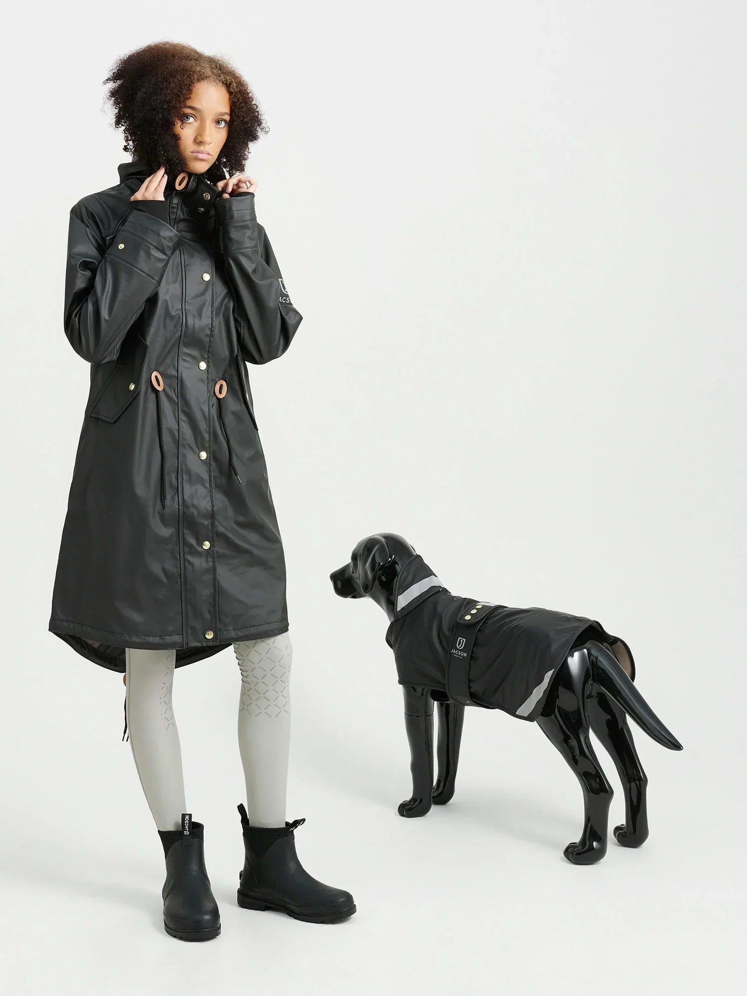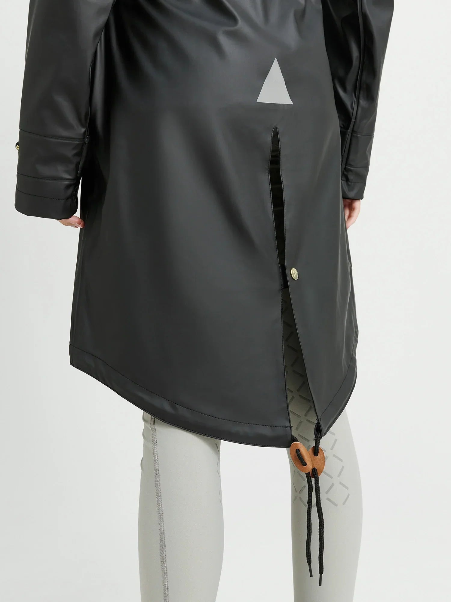 Letar du efter en funktionell och stilren regnkappa för ridning i alla väder? Då är Peggy regnkappa det perfekta valet för dig! Den här långa kappa är helt vattentät och möjliggör full rörlighet tack vare det öppningsbara sprundet baktill, vilket gör den idealisk för ridning utan hinder. Peggy är dessutom utrustad med flera reflexdetaljer för ökad synlighet, justerbara ärmslut, och en dragsko vid både midja och nedtill för en anpassningsbar passform. Välj bland flera färger och hitta din favorit för de regniga dagarna i sadeln!