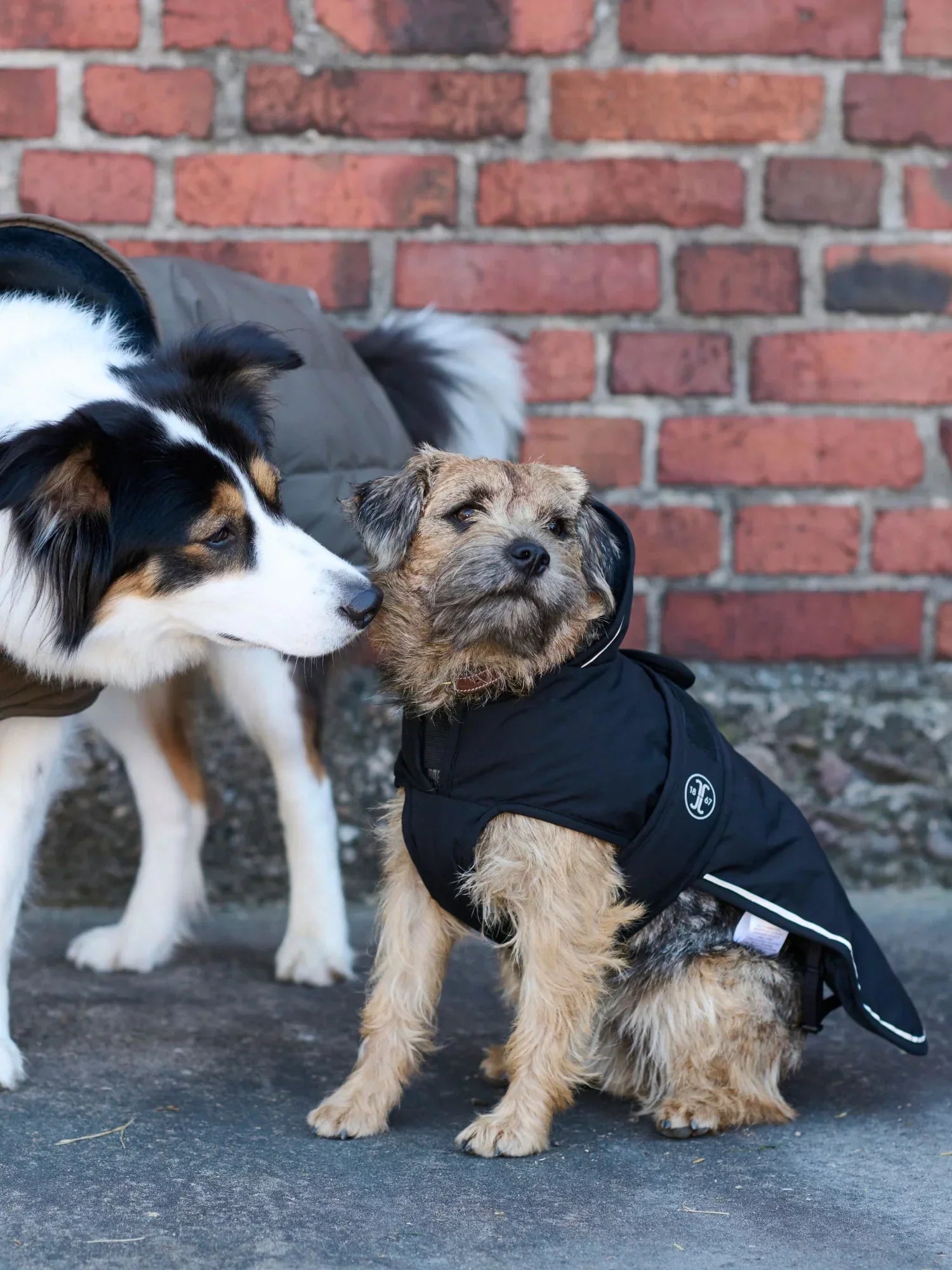 Håll din hund varm och torr i vinter med vårt vinterhundtäcke som är både funktionellt och miljövänligt. Täcket är fyllt med dunliknande syntetmaterial och tillverkat av återvunnen polyester, vilket gör det till ett hållbart val. Med en vattenpelare på 5000 mm och en andasfunktion på 3000 MVP, skyddar det effektivt mot både väta och kyla samtidigt som fukten ventileras bort. Fodret i mjuk softpile ger extra komfort och värme. Täcket har en praktisk magplatta med kardborrestängning över ryggen och justerbara elastiska bensnören för optimal passform. Reflexdetaljer ökar synligheten under mörka vinterdagar.