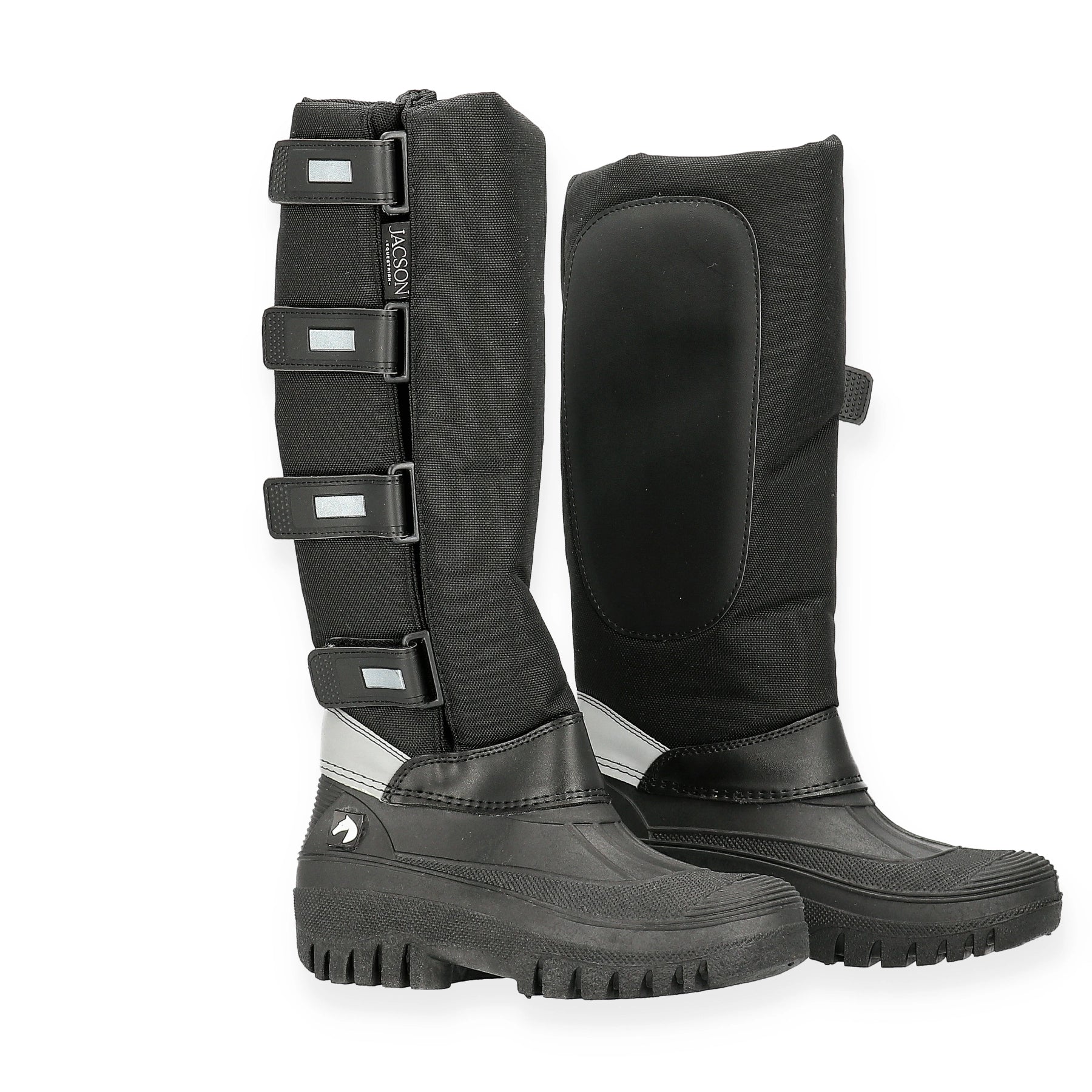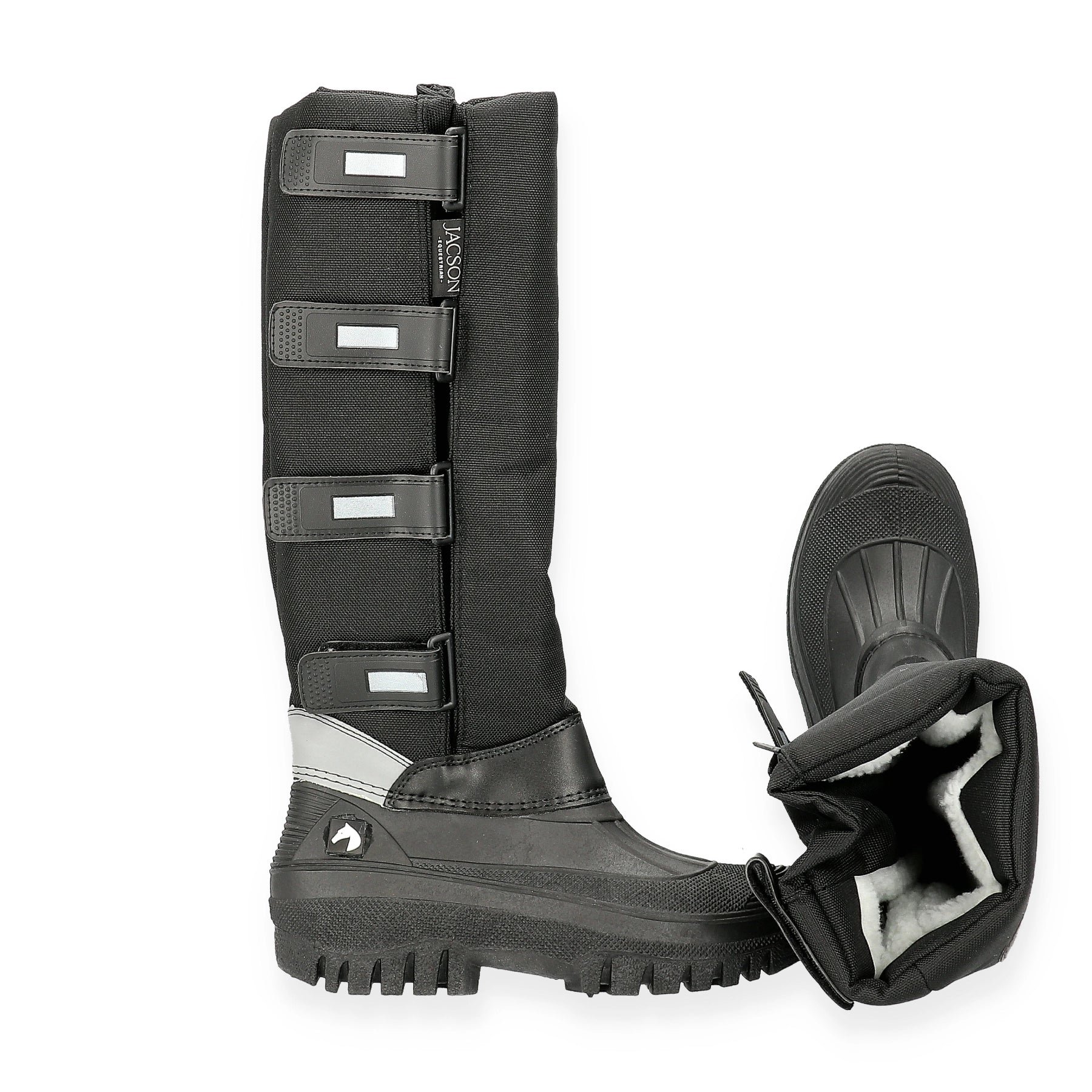 De varma thermoridstövlarna från Jacson är designade för kalla dagar i stallet eller på ridturen. Med en helgjuten vattentät gummifotdel och kardborreförslutning längs hela skaftet ger dessa ridstövlar både funktionalitet och komfort. De är fodrade med mjuk syntetpäls som håller dina fötter varma, medan reflekterande detaljer längs hela skaftet säkerställer att du syns i mörkret. Perfekta för alla väderförhållanden med ett robust skaft i nylon och vattentät gummidel.
