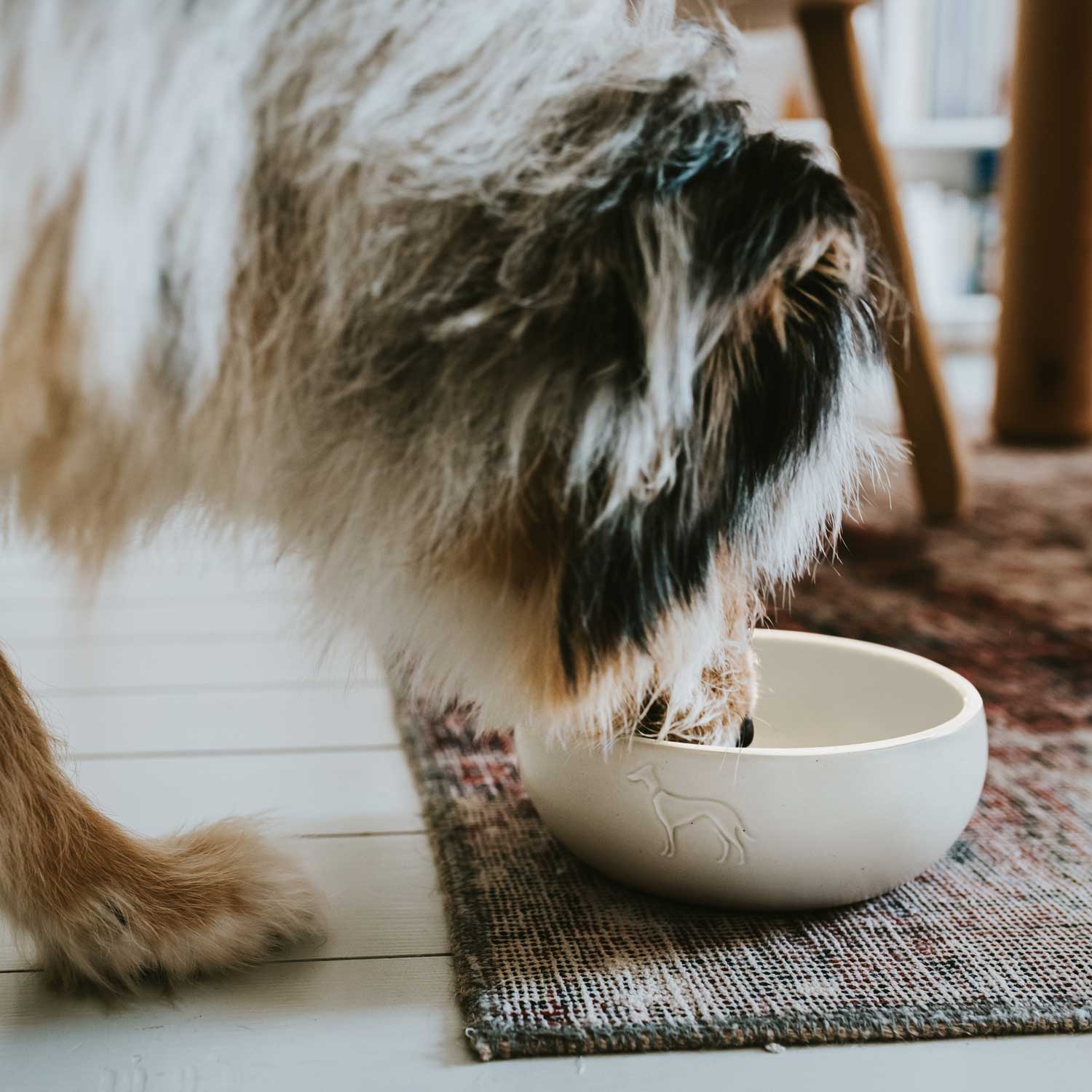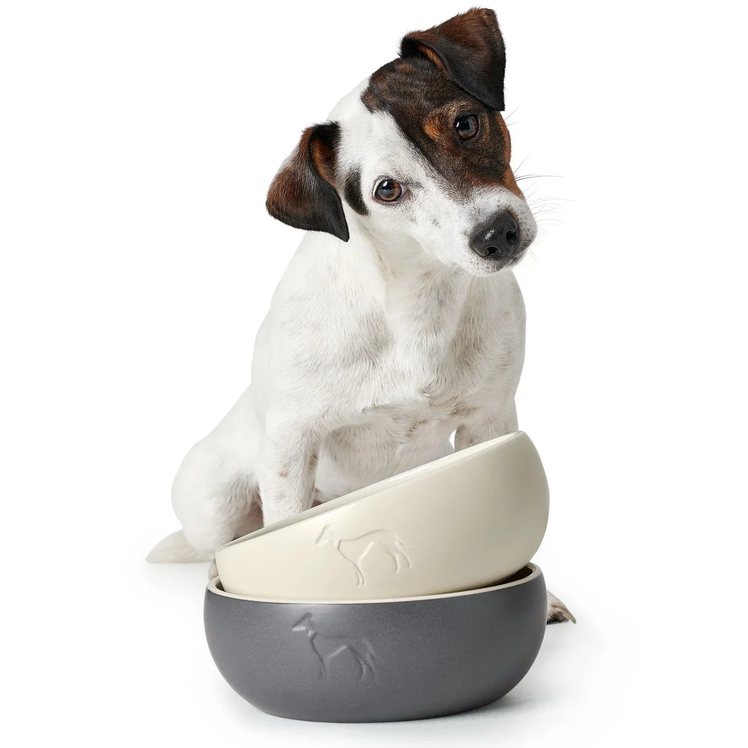Matskål i keramik med HUNTERs logo som passar bra för både mat och vatten. Matskålens underdel har en kant av silikon vilket förhindrar märken på golvet samtidigt som skålen står stadigt utan att glida. Skålen har lång hållbarhet, är robust och enkel att rengöra.