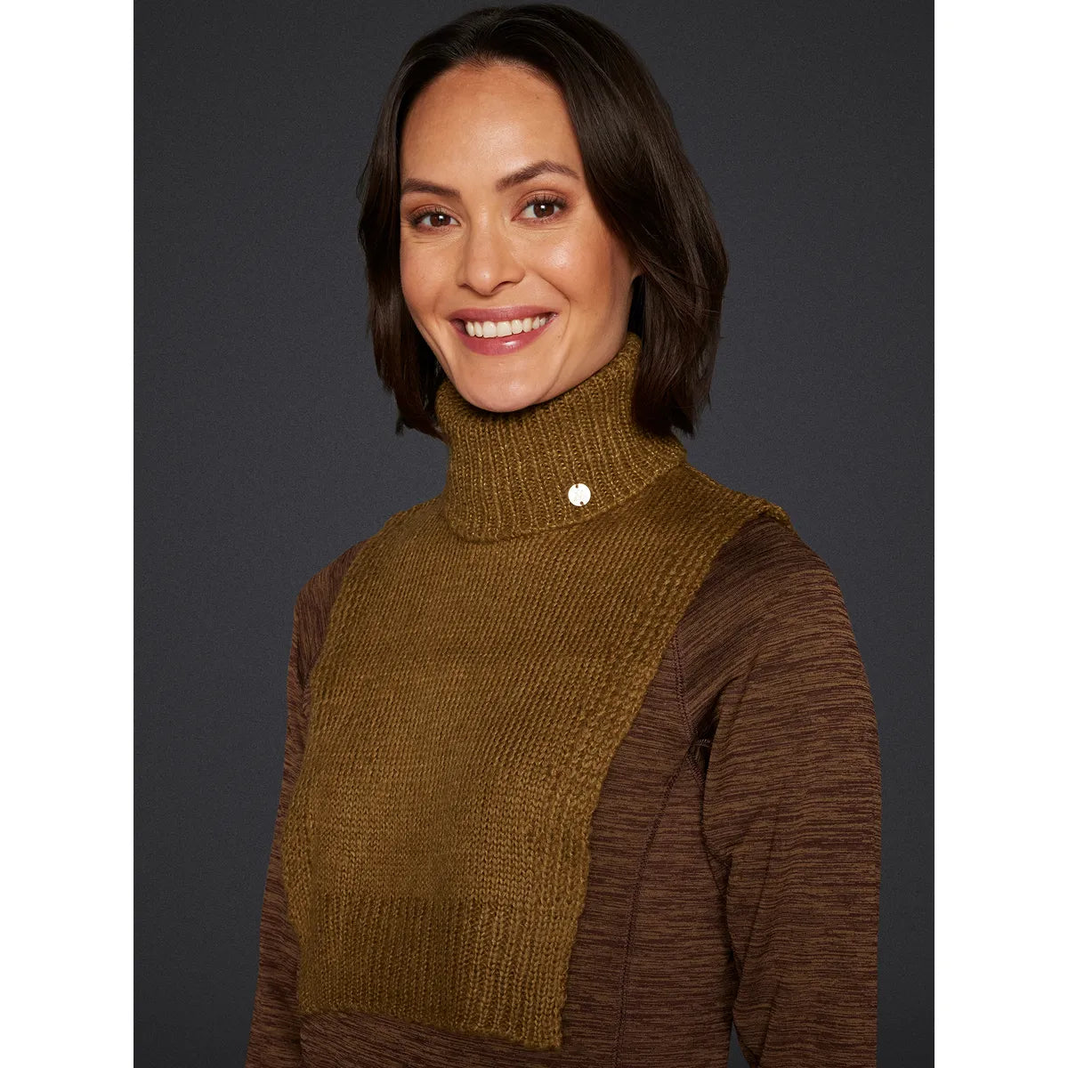 Denna stickade krage från Mountain Horse är designad med både stil och funktionalitet i åtanke. Den höga, vikbara kragen är försedd med ett subtilt inslag av glittrande lurextråd, vilket ger en elegant touch utan att kompromissa med värmen. Den förlängda fronten säkerställer att du håller dig varm, oavsett hur kallt det blir.