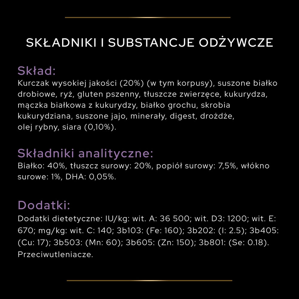 Ge din kattunge den bästa möjliga starten i livet med PRO PLAN Kitten Healthy Start! Denna produkt är utformad för kattungars specifika näringsbehov och främjar deras hälsa och utveckling. Med kyckling som huvudingrediens ger denna mat en rik smak som de flesta kattungar älskar. Produkten är särskilt framtagen med colostrum, ett naturligt ämne som stärker det naturliga immunförsvaret hos kattungar, vilket bidrar till ett starkare immunförsvar med upp till 50%*. Tillsatsen av DHA stödjer en hälsosam utveckling av syn och hjärna, medan den höga proteinhalten och balanserade mineraler säkerställer en sund tillväxt av ben och muskler.