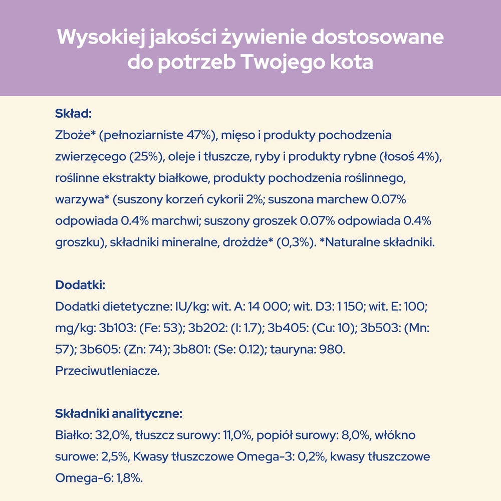 Välj Purina® Cat Chow® Sensitive med Lax för att säkerställa din katts dagliga välmående och hälsa. 🐾