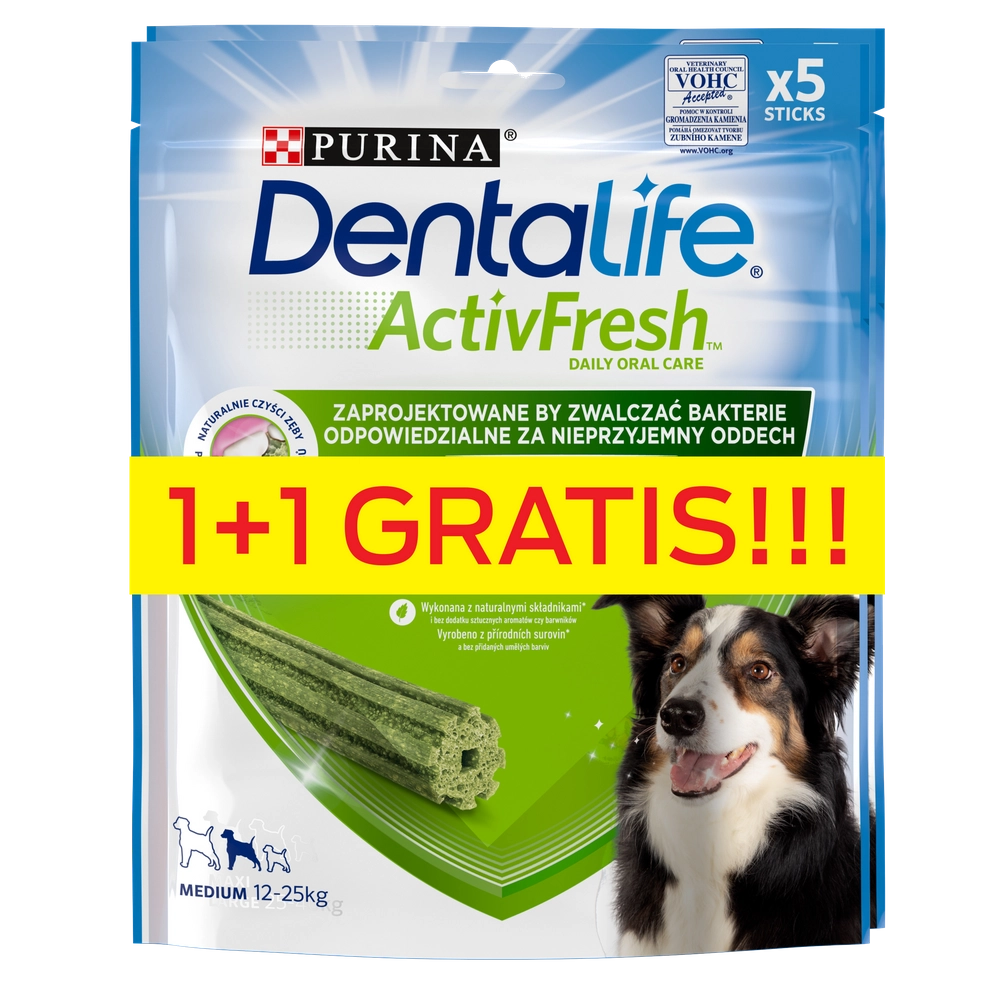 Purina Dentalife ActivFresh är en kompletterande hundmat särskilt utformad för att förbättra den orala hälsan hos vuxna hundar. Produkten är idealisk för hundägare som söker en effektiv lösning för att motverka dålig andedräkt och förbättra munhygien. ActivFresh innehåller naturlig spirulina och honung vilket inte bara maskerar dålig lukt utan bekämpar bakterier som orsakar den. Den vetenskapligt formade storleken och den svampiga strukturen hjälper till att minska plack och rengöra även svåråtkomliga tänder. Produkten är smaklig och har låg fetthalt, innehåller naturliga ingredienser, och är fri från konstgjorda smaker och färgämnen.